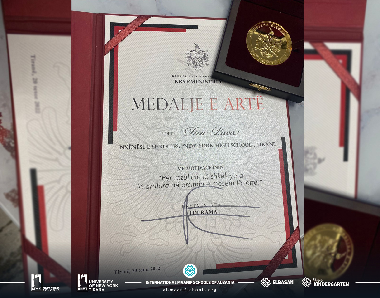 📌Krenar për studentët tanë të vlerësuar nga Kryeministri Z. Edi Rama dhe Ministrja e Arsimit dhe Sportit Znj. Evis Kushi, me “Medaljen e Artë”.🥇Në ambientet e kryeministrit, katër alumni të New York School: Heidi Jemin, Ema Myftiu, Dea Bejko dhe …