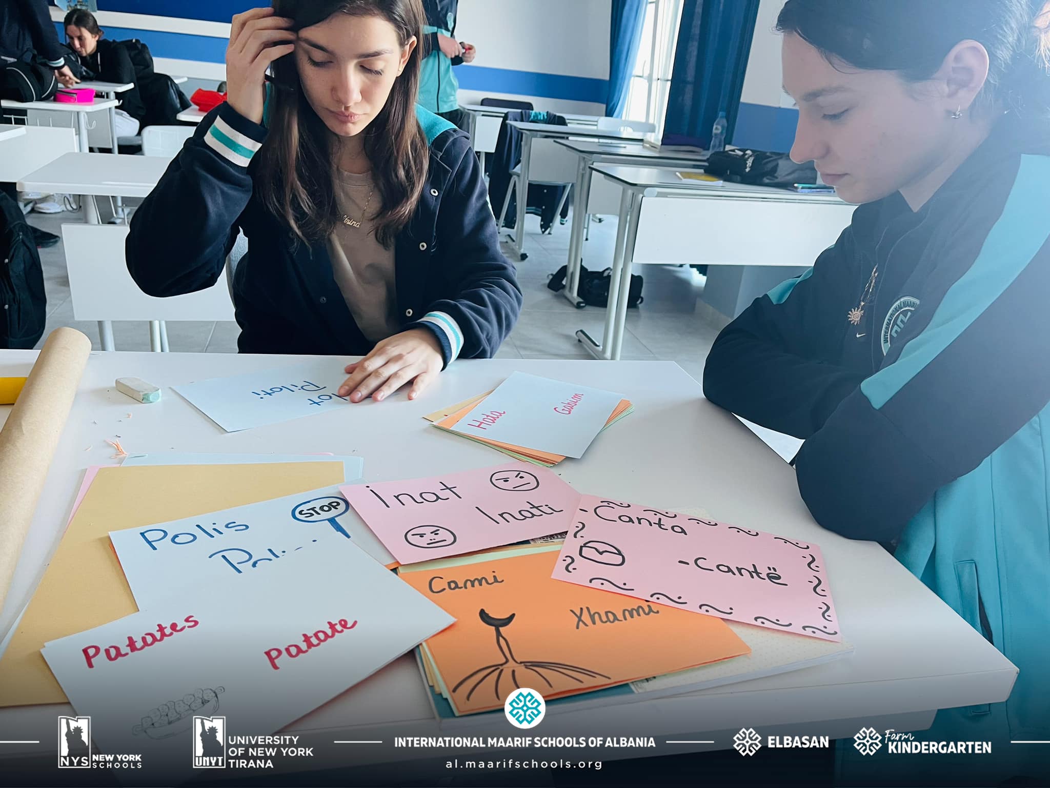 Vendosëm të zgjedhim fjalët më të zakonshme turqisht-shqip që përdoren më shumë në jetën e përditshme me nxënësit tanë dhe të bënim një tabelë. Duke përdorur letra me ngjyra, shkruam drejtshkrimin turqisht dhe shqip të çdo fjale dhe vizatuam figurat …