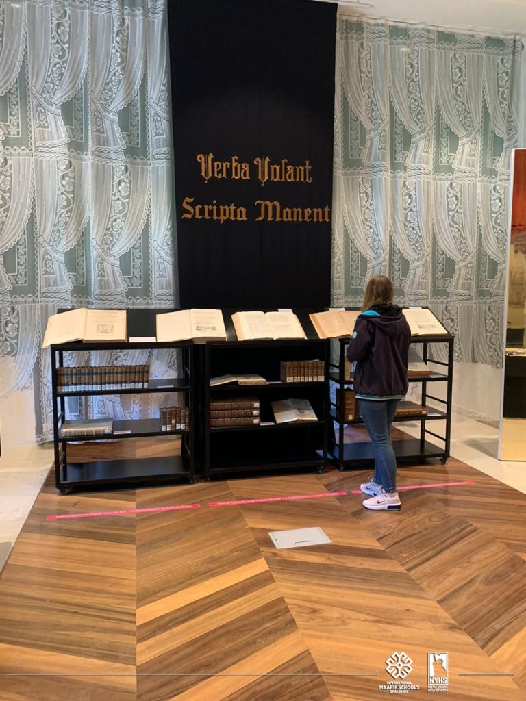 Ekspozita në ambientet e Kryeministrisë, ftoi nxënësit e New York High School për të vizituar thesare të Bibliotekës Kombëtare e cila ka nxjerrë nga fondi i librave të rrallë 800 ekzemplarë, ku shumë prej tyre datojnë pas shekullit të 16-të dhe një pjesë e vogël në fillimet e shekullit të 20-të.