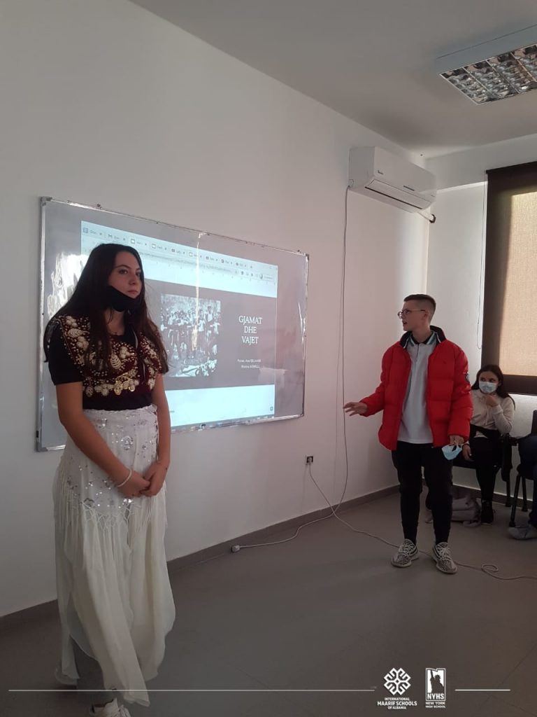 Me dëshirën për të mësuar mbi traditën e historinë e të parëve tanë si shprehje e identitetit dhe përkatësisë shekullore, nxënëset treguan përkushtimin e tyre në realizimin e këtij prezantimi.