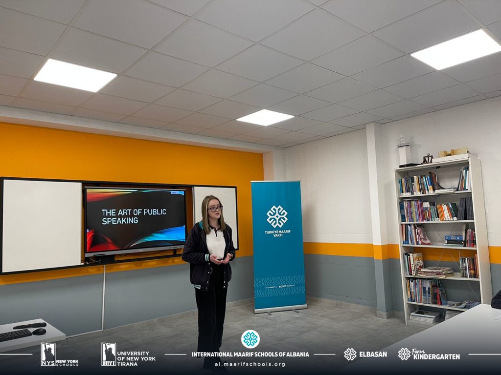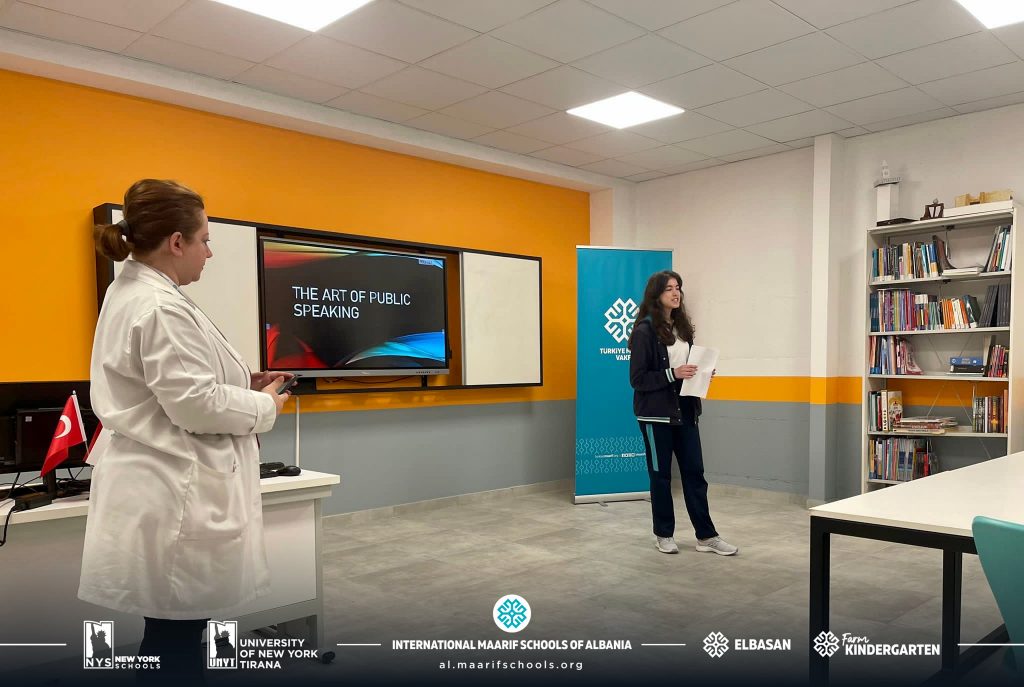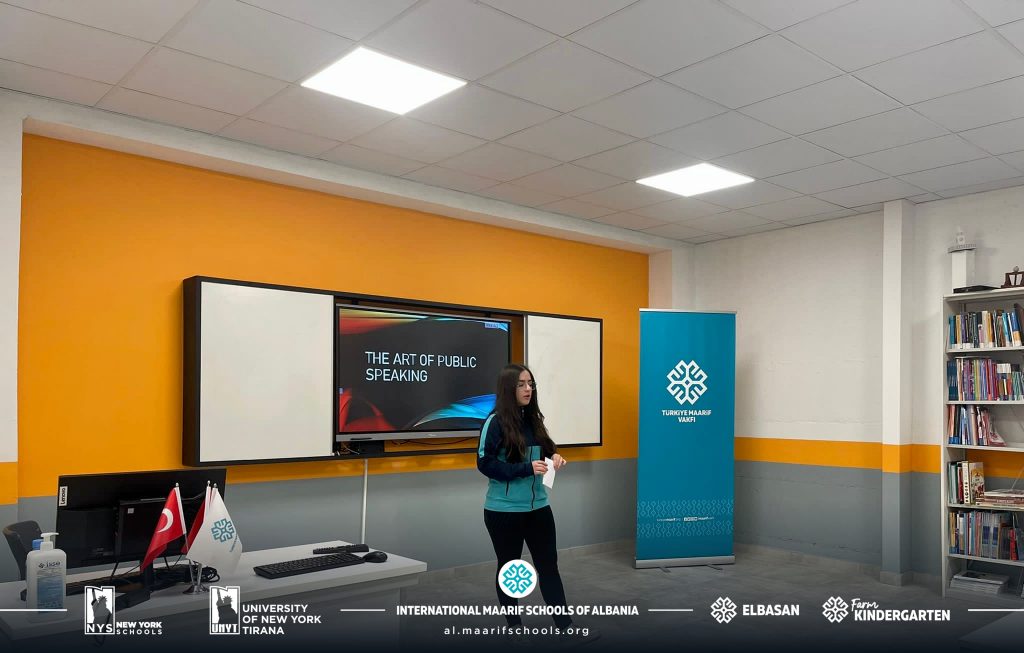 Në shkollën e New York, të folurit në publik nuk konceptohet vetëm si lëndë shkollore. Folësit e rinj të klasës së 10-të mbajtën fjalimet e tyre mbi temat më të spikatura në ditët e sotme. Ata me eksperiencë, pjesëmarrës në garat ndërkombëtare i inkurajuan me këshilla se si të përmirësojnë aftësitë e tyre.
