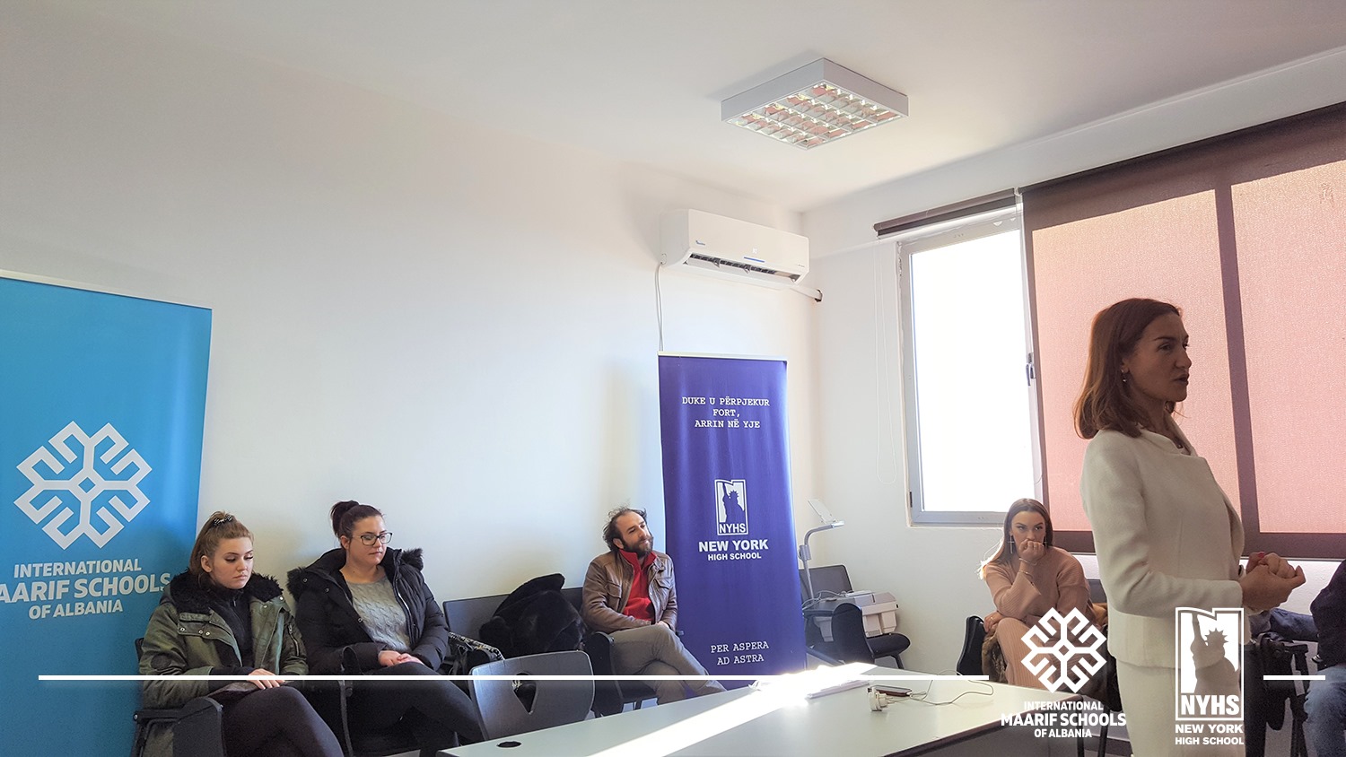 Në datën 6 shkurt 2020, pedagogia e Deges së Psikologjisë të University of New York in Tirana, Dr.Arbiola Halimi, së bashku me një grup studentësh të vitit të fundit Bachelor, vizituan shkollën New York High School.
