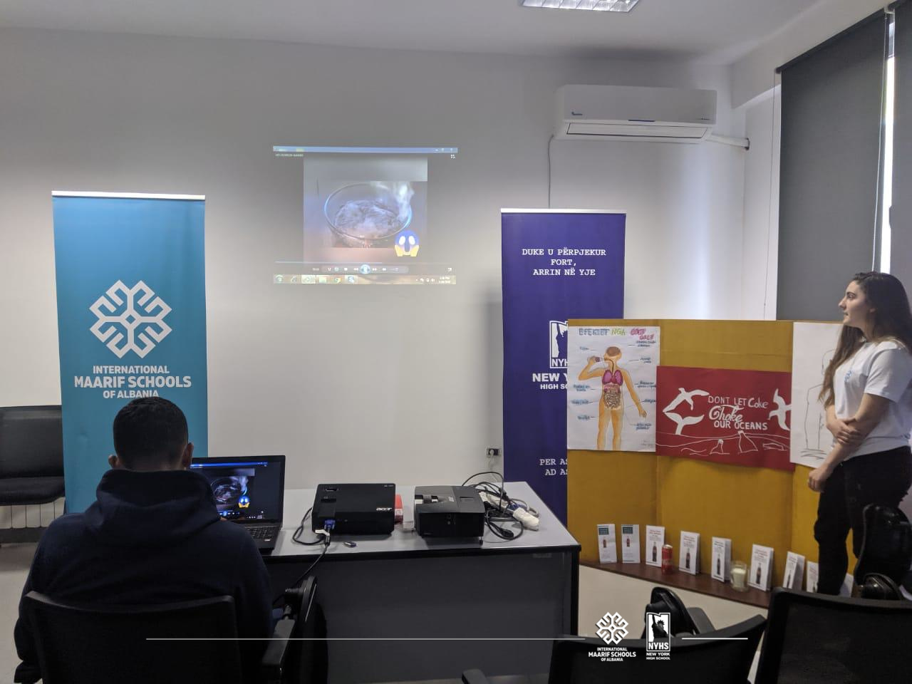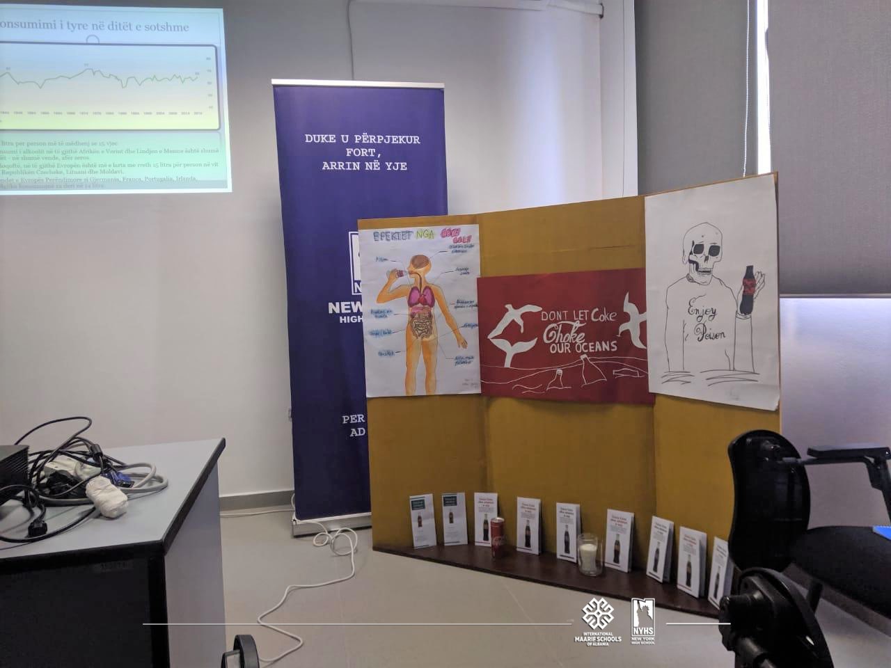 Aktiviteti në New York High School kishte si qëllim pikërisht paraqitjen e këtyre efekteve negative të Coca-Colës në shëndetin tonë. Informacioni u paraqit në forma të ndryshme si me postera, prezantim, fletëpalosje etj. 📑📈📊